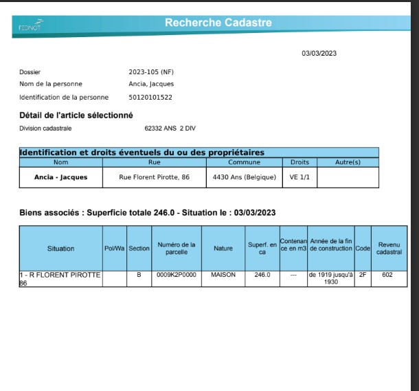 | Revenu cadastral (€) (montant) | 602 € |